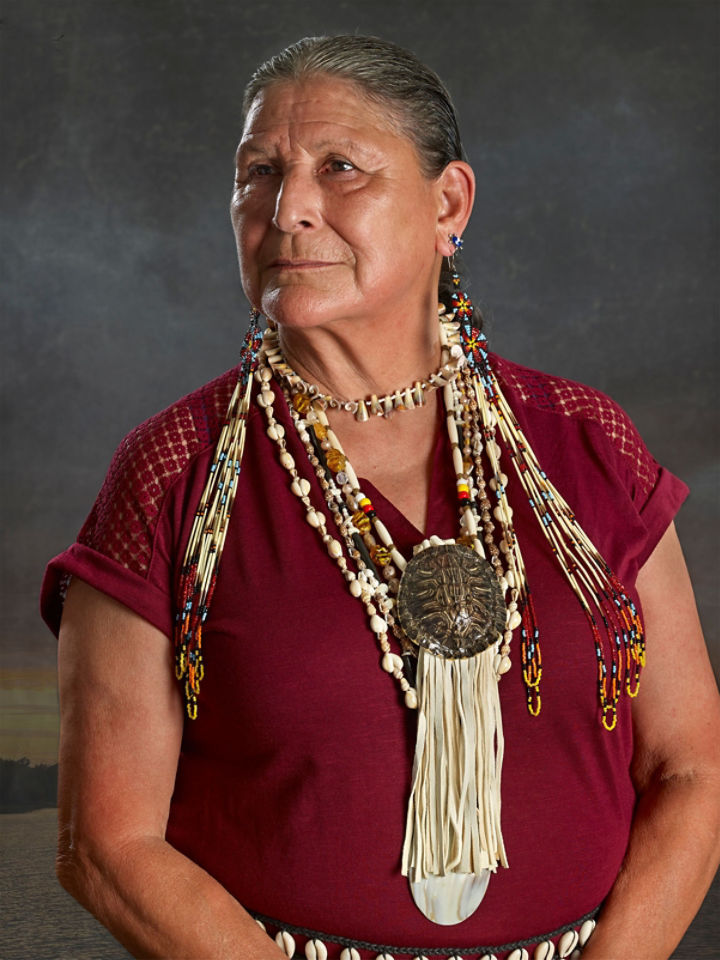 Sharon Hoogstraten is an Emmy Award–winning photographer, animator, and graphic designer. Over the course of more than a decade, Hoogstraten photographed members of all nine Potawatomi nations in traditional regalia—work that led her to uncover her own ancestral connections. Her large-scale portraits affirm a powerful message: We Are Still Here. Her work has been exhibited in museums and cultural institutions nationwide.
